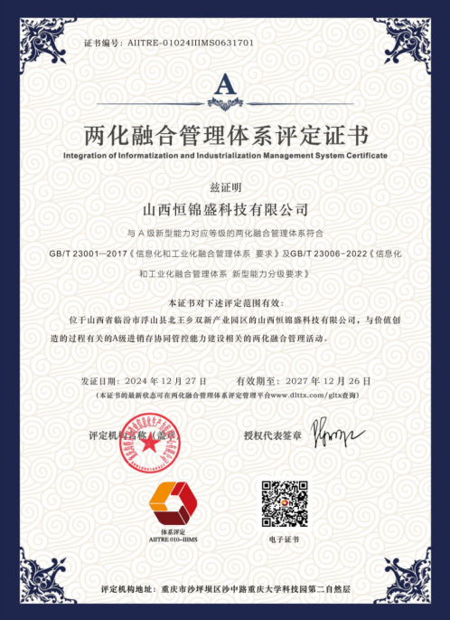自2023年9月兩化融合貫標工作啟動(dòng)以來(lái),公司相關(guān)工作人員秉持著(zhù)高度的敬業(yè)精神與專(zhuān)業(yè)素養,全力以赴投入到項目的各個(gè)環(huán)節中,經(jīng)過(guò)近一年四個(gè)月的努力,終于成功達成目標,于2024年12月27日取得兩化融合管理體系A級評定證書(shū)。兩化融合貫標,即貫徹《信息化和工業(yè)化融合管理體系》系列標準,是企業(yè)圍繞獲取可持續競爭優(yōu)勢,將信息化與工業(yè)化深度融合的過(guò)程。此項目旨在推動(dòng)企業(yè)打造信息化環(huán)境下的新型能力,如數字化研發(fā)設計能力、智能化生產(chǎn)能力等。我公司作為傳統制造業(yè)企業(yè),在轉型升級過(guò)程中通過(guò)兩化融合貫標可實(shí)現生產(chǎn)方式、管理模式的變革,以應對激烈的市場(chǎng)競爭,提升企業(yè)競爭力,為公司創(chuàng )造新的增長(cháng)點(diǎn)。山西省對兩化融合貫標企業(yè)有相應的獎勵政策,企業(yè)可以獲得資金支持和政策優(yōu)惠,有助于企業(yè)的持續發(fā)展和壯大。